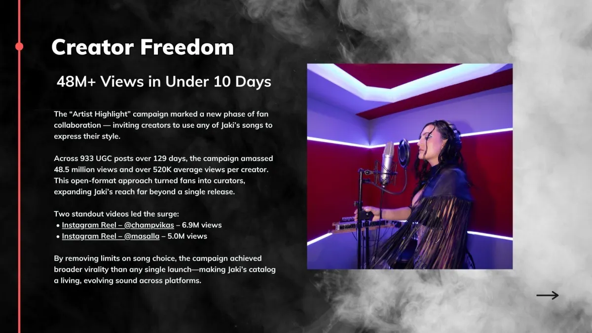 We scale authentic fan-style content — clips, reactions, edits, and challenges — that amplify music, events, and performances. This fuels culture while driving streams, ticket sales, and buzz.